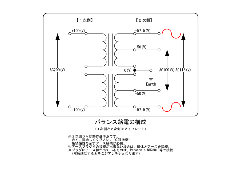 ※当製品は設置の際に、機能アース(2次側接続用C種接地相当)への接続が必要です。
